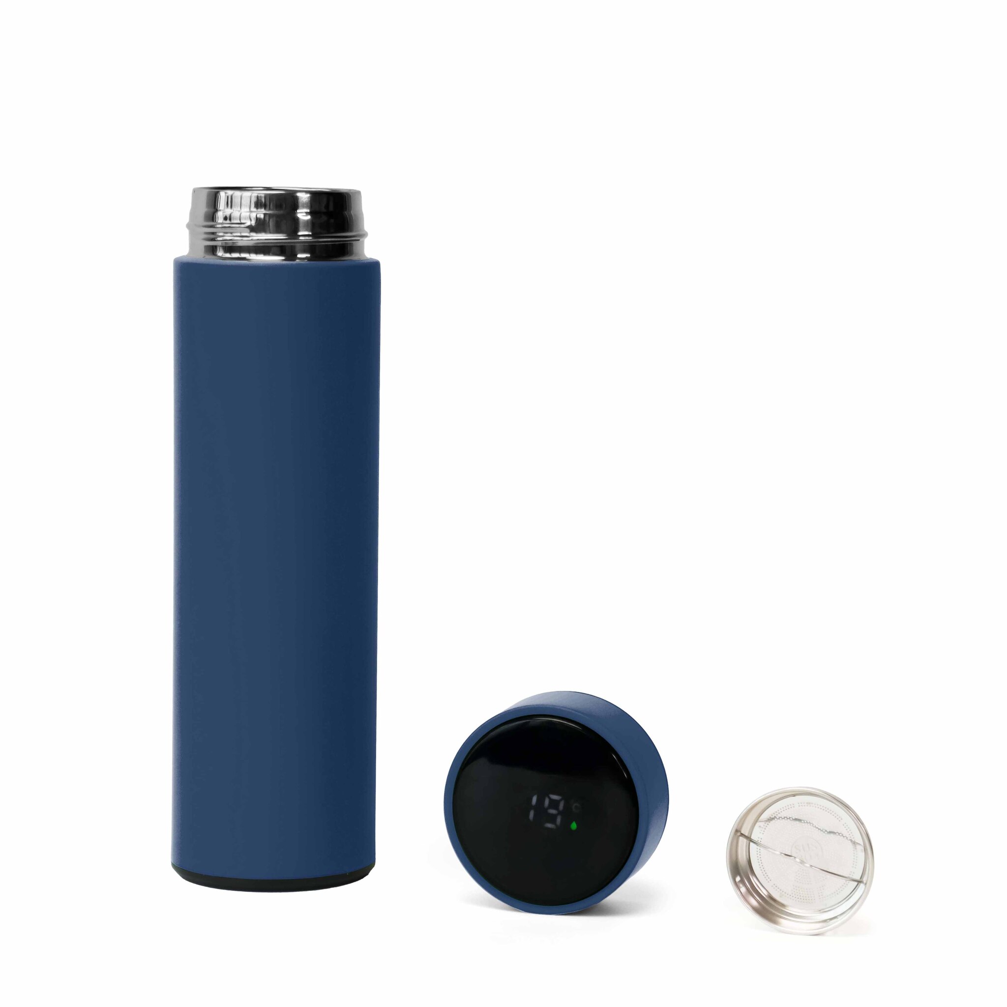 Термос из нержавеющей стали, покрытый цветным soft touch, с крышкой, в которой встроен термометр и LED дисплей, показывающий температуру внутри термоса. Объем: 500 мл. Упаковка: каждый термос в крафт коробке.